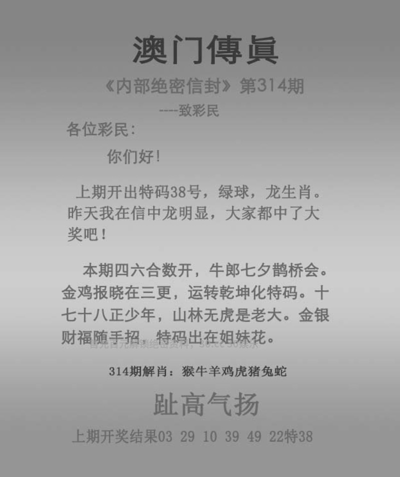 | 315期【绝杀十码】开:虎04中 02.13.14.18.25.27.30.34.38.49 |
