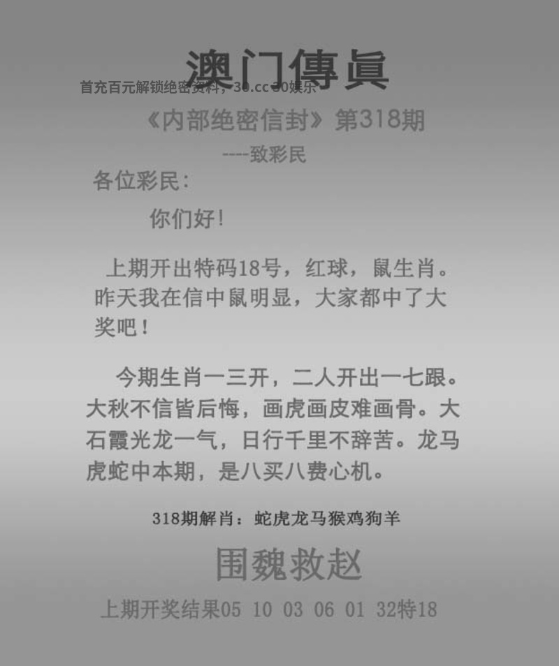 | 318期:两波中特【红波绿波】开:鼠06中 |